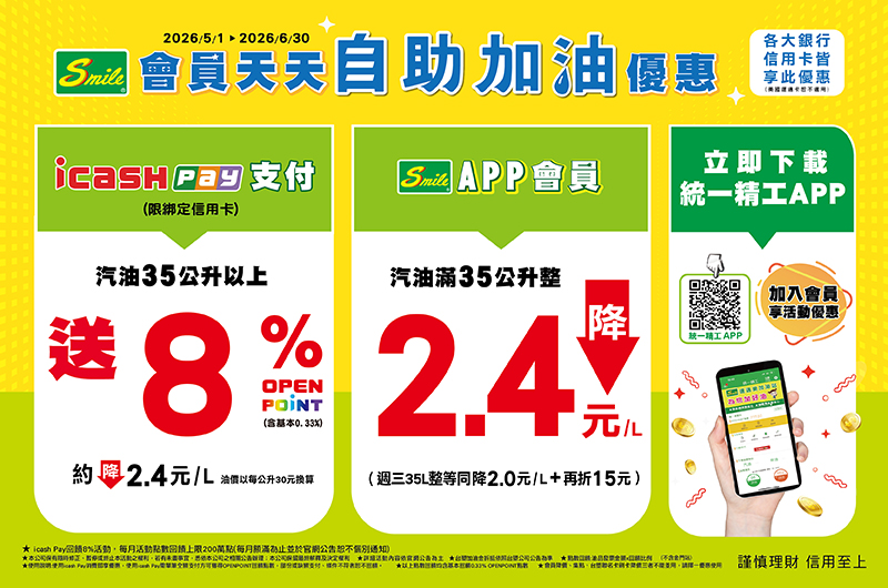 3. 使用OPENPOINT 點數折抵加油金,系統一律全額折抵,但至少保留 1 元發票金額。